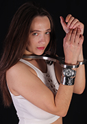 Kayla Louise was in our studio a few times, but we never actually shot her for publication! So here is a set of the beautiful UK glamour girl, locked in a brand new device! While the standard RigidCuffs are made from aluminium, this one is made out of heavy stainless steel. It is much heavier, but also a little thinner. And it has a shiny smooth surface! This new smooth fiddle is great! And of course, with the padlock on the underside, Kayla Louise is not going to escape, not even when we give her the keys! We just love fiddles!