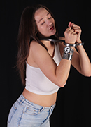 This RigidFiddle is not an original one. It is a steel version (the original is aluminum). It looks thinner, but it is much heavier! Svetlana finds out it is impossible to escape too, the padlock on this one is so tiny, there is no chance if the lock is placed underneath. I think she didn’t mind though, she was smiling and having fun in her first time ever fiddle experience!